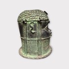Vintage African Benin Cast Bronze Owl Container Sculpture, Nigeria