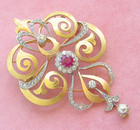 Antique Art Nouveau 1.90ctw Diamond Ruby 18k Big Cocktail Brooch Or Pendant 1920