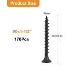 170pcs #6 × 1-1/2 Inch Drywall Screws, Black Wood Screws, Coarse Thread #259