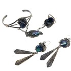 Vintage Abalone Brooch Bracelet Earrings Lot Sterling Silver 925 Tassels Open