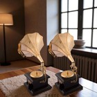 Vintagereplicas Mini Gramophone Showpiece – Brass & Wood Antique Decor (9.5")