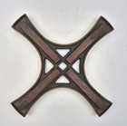 Vtg Solid Brass & Wood Footed Trivet 9" X 9" Cross X Shape