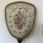 Vintage Petit Point Embroidery 2 Piece Vanity Set Mirror & Brush