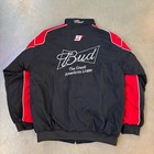 Vintage Bud Racing Jacket Mens Xl Nascar Puffer Full Zip Budweiser Beer Patches