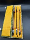 Vintage Chinese Asian Calligraphy Brush Set Of 3 Dragon Logo Silk Box