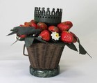 Vintage Metal Strawberry Basket Single Candle Holder Marble Base Strawberries