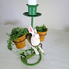 Vtg Petite Choses Candleholder Metal Leaping Rabbit Easter W/ Egg Baskets 7"