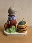 Vintage Bisque Girl Holding Basket Figurine Candle Holder