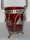 Vtg Silver-metal Basket Wire Handle Red Glass Candle Holder 8” Made In India
