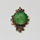 Vtg Carved Peking Glass Faux Jade Grn Floral Brooch Ornate Filigree Art Nouveau