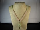 Vintage Carved Leaf With Pink, Green, And Cream Colored Beads 28 Inches Long