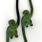 2 Vintage Cast Iron Monkey S Hooks Green 8" Plant Hangers Japan Mid-century