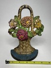 Vintage Cast Iron Door Stop, Woven Fruit Basket - 8” Black