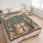 Cute Cat Throw Blanket For Cats Lover Valentine's Day Bed Blanket Floral Plant B