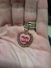 Cc Chanel Zipper Pull Pendant, Heart, Rhinestones, Pink, Gold, 22mm, Stamped
