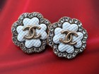Auth Chanel Cc Logo Rhinestone Round Button Earrings 23 Clip-on 1988 Vintage