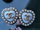 2 Stamped Chanel Cc Buttons/22mm/white Gold Pearl Rhinestone Heart/set Of 2