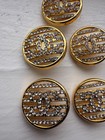 Chanel Vintage Gold Metal With White Crystals Buttons 18 Mm (set Of 6)