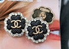 2 Stamped Chanel Cc Buttons/22mm/black Gold Clear Rhinestone Clover/set Of 2