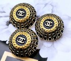 6 Stamped Chanel Cc Buttons/22mm/black Gold Round/set Of 6