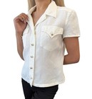 Chanel Vintage 97p Cc Logo Button Linen Shirt Top #40 Short Sleeve White Gold