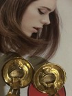 Authentic Vintage Chanel Clip On Gold Tone Button Earrings Pearl Rope Cc Logo