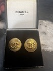 Chanel Cc Logo Roped Border Round Clip On Earrings Gold Tone Authentic Vintage
