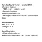 Paradise Found Mens Camaro Ss Hawaiian Shirt Blue Short Sleeve Size M Vinage