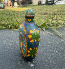 Antique Chinese Orange Handpainted With Birds Snuff Bottle Missing Lid.