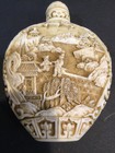 Vintage Etched Glossy Bovine Bone Asian Chinese Outdoor Scene Snuff Bottle W/box