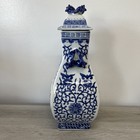 Vintage Chinese Blue And White Porcelain Vase With Lid & Stand 14”h X 10” D