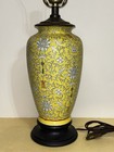 Vintage 24” Chinese Famille Rose Yellow Porcelain Vase Lamp Longevity Symbol