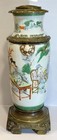 Authentic Antique Chinese Famille Vert Vase Lamp Bronze Foot