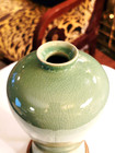 Beautiful Chinese Celadon Crackle Glaze Vase With Stand, 7.5’’