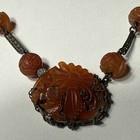 Vtg Antique Chinese Carved Carnelian 15.5” Sterling Choker Necklace Tlc