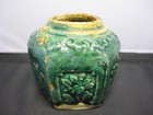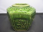 Vintage Antique Chinese Chinoiserie Hexagonal Green Glazed Ginger Jar #1