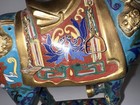 Vintage Chinese Enamel Cloisonné Incense Burner Censor Brass Foo Dog Feet 6"