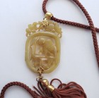Old Vintage Hand Carved Chinese Yellow Jade Pendent Necklace Bird In Bamboo