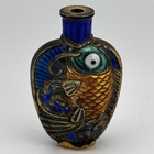 Vtg Chinese Enamel And Metal Snuff Bottle Koi Fish Design Missing Top
