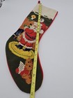 Vtg Needlepoint Wool Christmas Stocking Santa Claus And Cat Red Velvet 19" Read