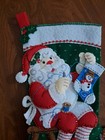 New Finished Bucilla Christmas Stocking Santa Teddy Bear Handmade Decor
