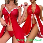 Women Sexy Lingerie Red Babydoll Nightwear Santa Christmas Sleepwear G-string Us