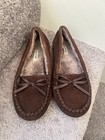 Womens Slippers Moccasin Style Slip On Brown Mock Suede Faux Fur Lining S 5-6
