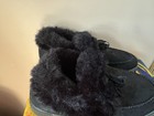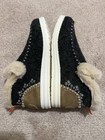 Women's Black Faux Fur Moccasin Slippers Gold Accent Lace Size 38 Eu 7.5 Us New