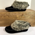 Suede Fur Lined Moccasin Slippers Womens Sz 6 Black Cozy Winter Bow Loungewear