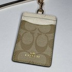 New 💯 Authentic Coach Id Lanyard Card Holder Signature Leather Brown Black $68