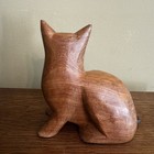Vintage Hand Carved Wood Mcm Cat Statue Figurine Boho Rustic Mid Century Modern