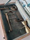Vintage Thailand Brass Wood 9-piece Bar Tool Set In Wooden Box, Mid Century Mcm