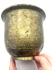 Vintage Very Old Solid Brass Chinese Planter Etched Flower And Bird Design 5"