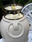 Cool Pair Of Mid Century Modern Mcm Cream & Gold Vintage Glass Ceramic Lamps